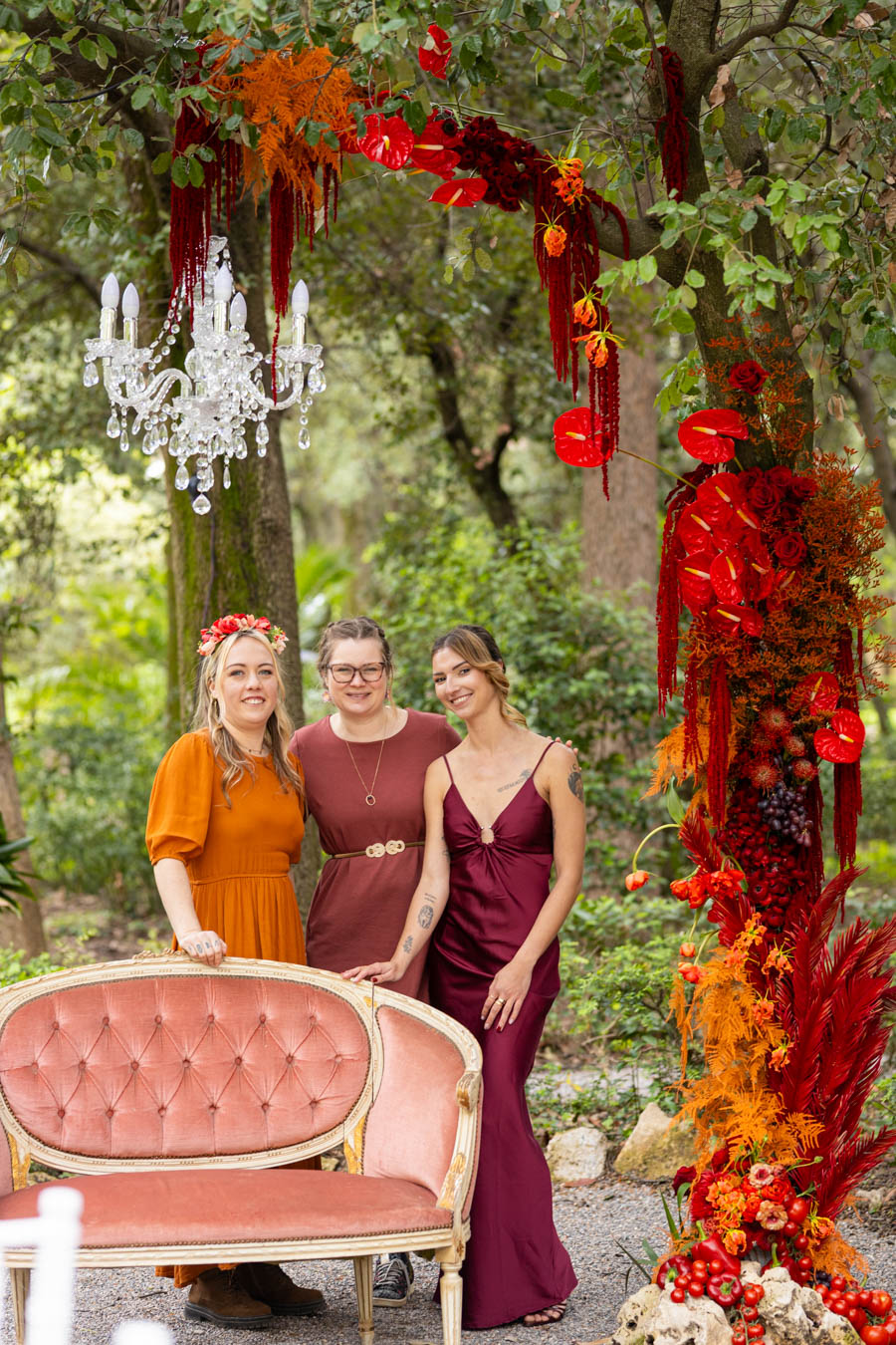 Scénographie du lieu de cérémonie et de réception | Bouquet de la mariée | Bouquets de demoiselles d’honneur | Arche florale | Accessoires floraux