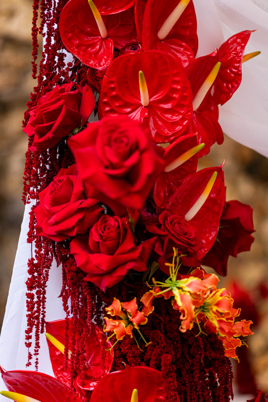 Bouquet de la mariée | Scénographie du lieu de cérémonie et de réception | Arche florale | Accessoires floraux | Décoration du cortège