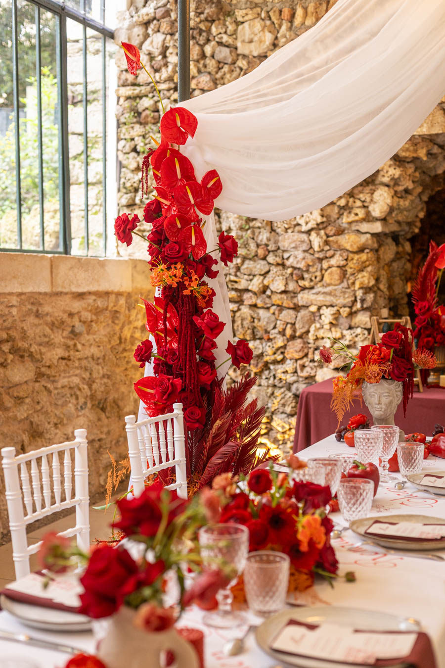Bouquet de la mariée | Scénographie du lieu de cérémonie et de réception | Arche florale | Accessoires floraux